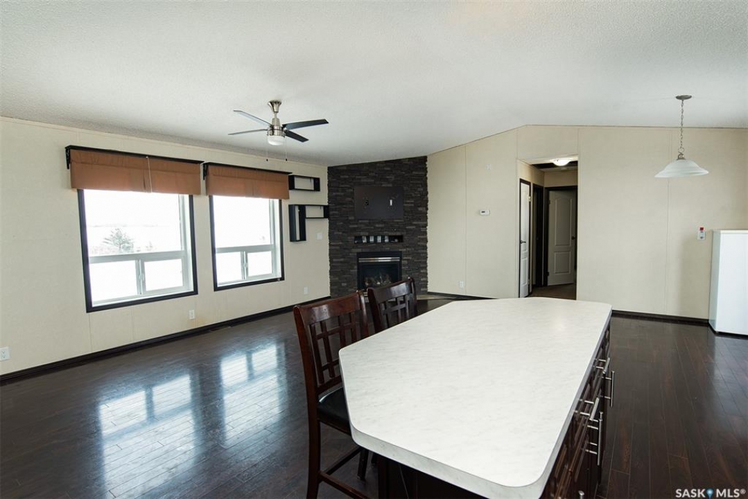 Located near Kandahar just minutes from Wynyard, this well-kept 3 bedroom, 2 bathroom mobile home sits on 1.9 acres offering space, privacy, and comfortable country living. The home features a cozy fireplace, functional layout, and a versatile bonus room ideal for an office, playroom, or extra living space. Enjoy beautiful prairie sunsets from the west-facing back deck, plus a covered front area that provides sheltered entry and a relaxing spot to unwind. The yard provides plenty of room for gardening, recreation, or outdoor storage, and the owners have recently planted 150 hybrid poplar trees, creating a future shelterbelt for added privacy and wind protection. A major highlight is the 24 x 32 shop with 16-foot walls, perfect for vehicles, projects, storage, or hobby use. This property offers the peace of rural living with the convenience of a short drive to town amenities, schools, and services.