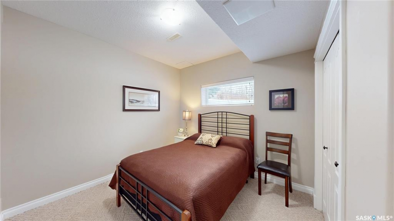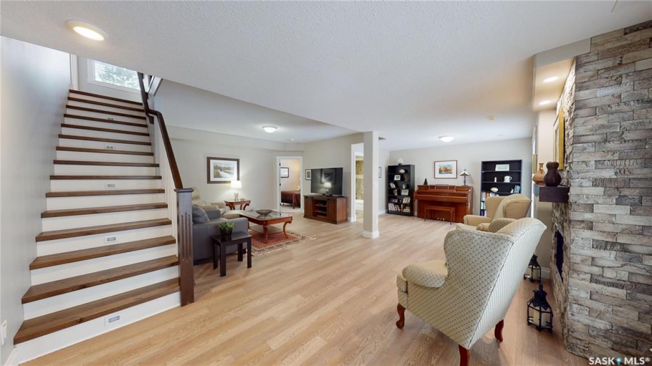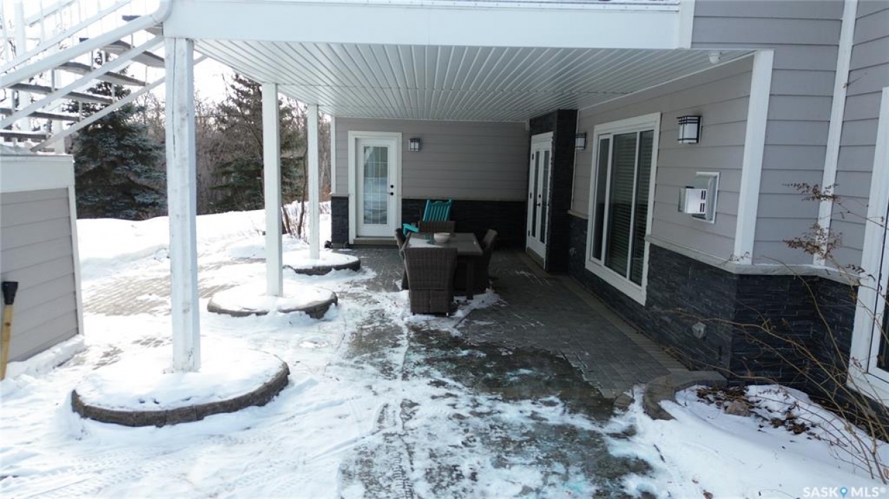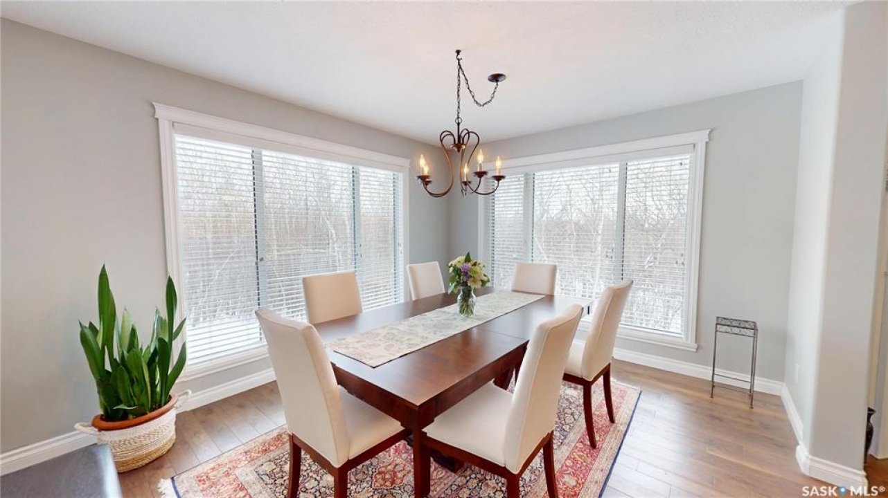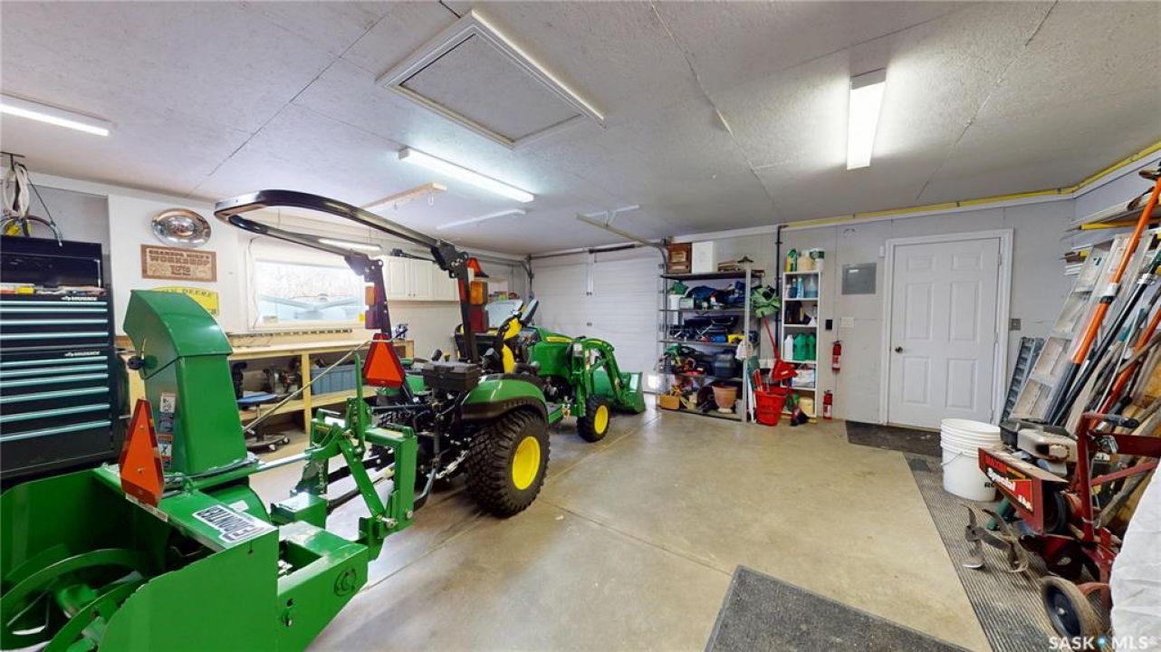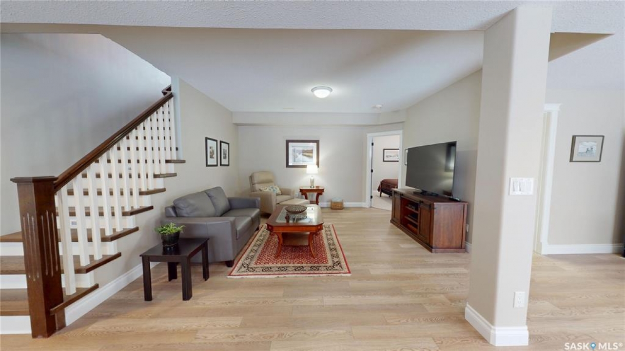 Absolutely beautiful and large executive-quality walkout bungalow on a well-treed 10-acre yard only 10km east of Saskatoon. Please view the Matterport 3D virtual tour and floor plans in the listing. Definitely one of the best acreages you'll find, offering city water, a private park-like yard, and a stunning home with over 3600 square feet of living area. An archway connects the foyer to a spacious living room under soaring vaulted ceilings, where you can cozy up to a warm gas fireplace. A formal dining area with large windows and a gourmet kitchen with ample counter space flank the living room, perfect for entertaining while maintaining distinct spaces. The primary bedroom has a luxurious ensuite with a jetted tub and a walk-in closet. The main floor also includes a second bedroom, a full bath, an office that could be converted into another bedroom, laundry, and a 4-season sun room accessible from the primary bedroom and kitchen nook. The walkout basement with comfortable in-floor heat adds a 3rd bedroom and bathroom, a generously large family room with another gas fireplace, and a games room that could be modified to serve as an additional bedroom. An attached garage is fully insulated and finished with cabinets, and there's a heated 24x24 workshop. A massive paving stone patio is sheltered by the deck above, with a curved sidewalk nestled up to a fish pond. Over $100k spent on major renovations and improvements since 2021 by qualified trades using top-quality materials - pride of ownership is evident everywhere you look. Many gardens, fruit trees, and walking paths provide a peaceful setting, while high-end finishes like hardwood flooring and granite countertops inside the home will pamper owners with even the most discerning and cultivated tastes. Too many upgrades and features to mention, the list goes on and on - must be seen to be fully appreciated. Call now for your own private viewing!