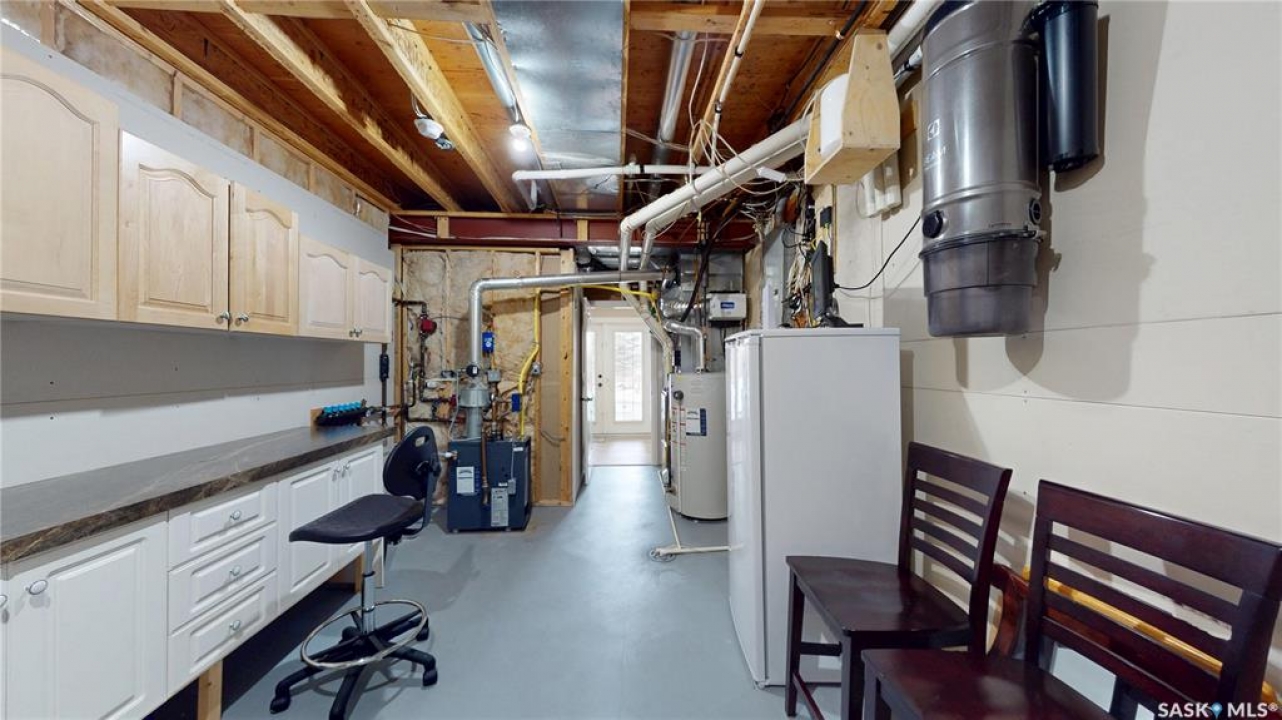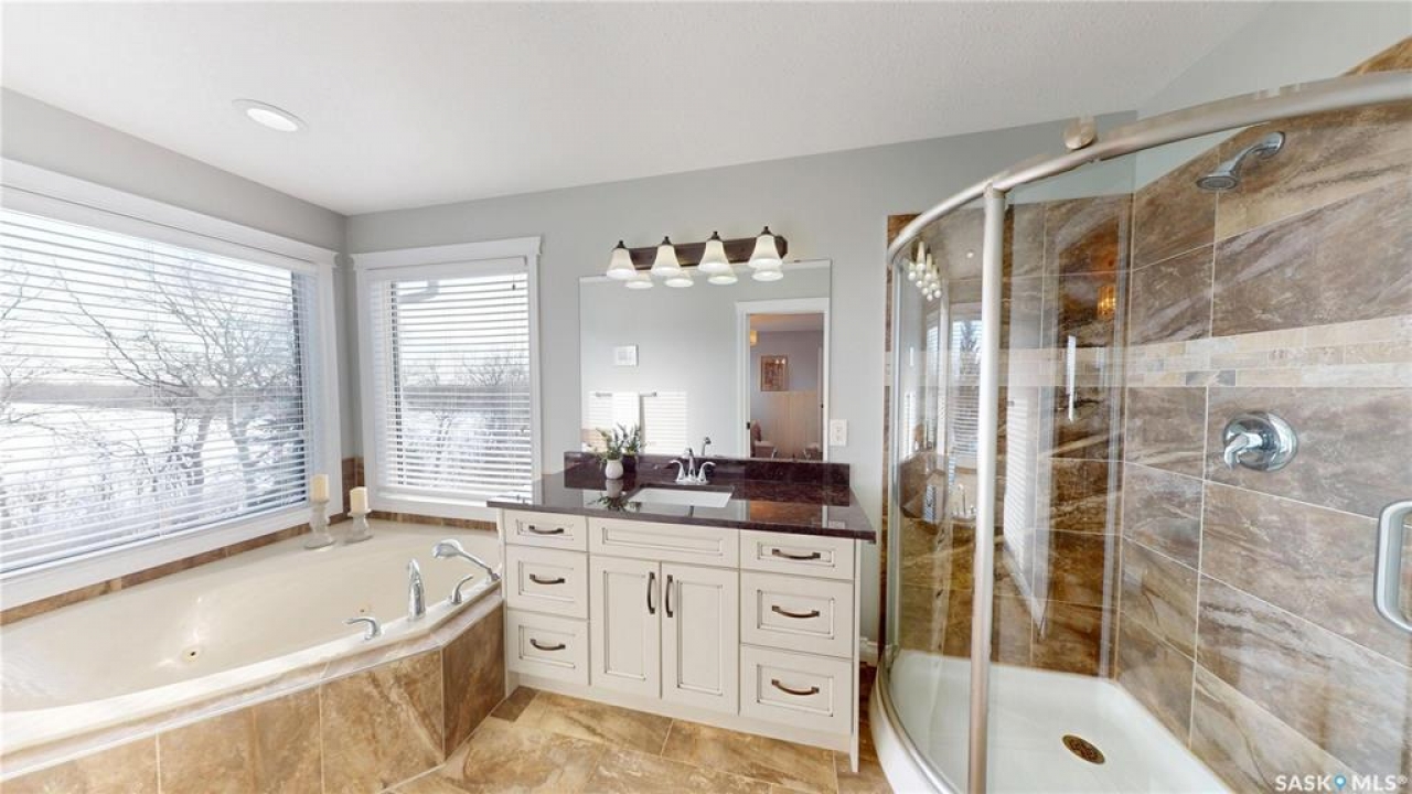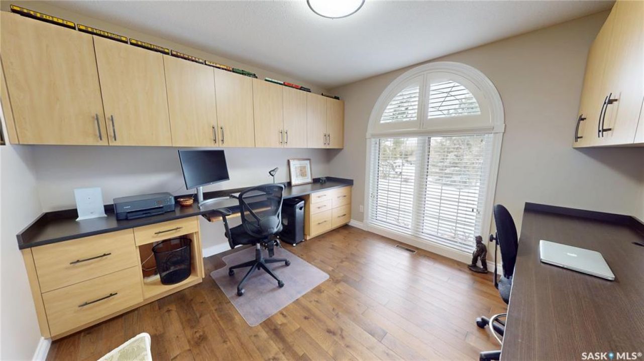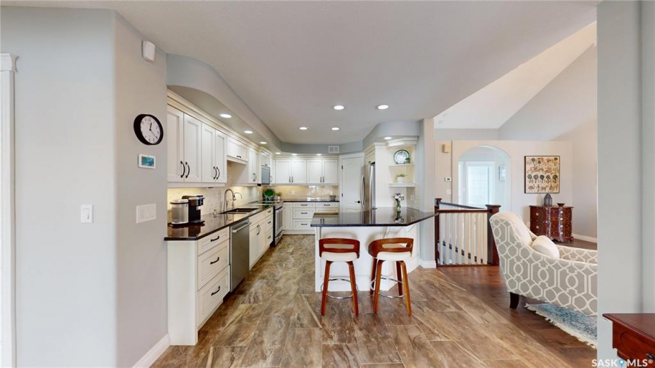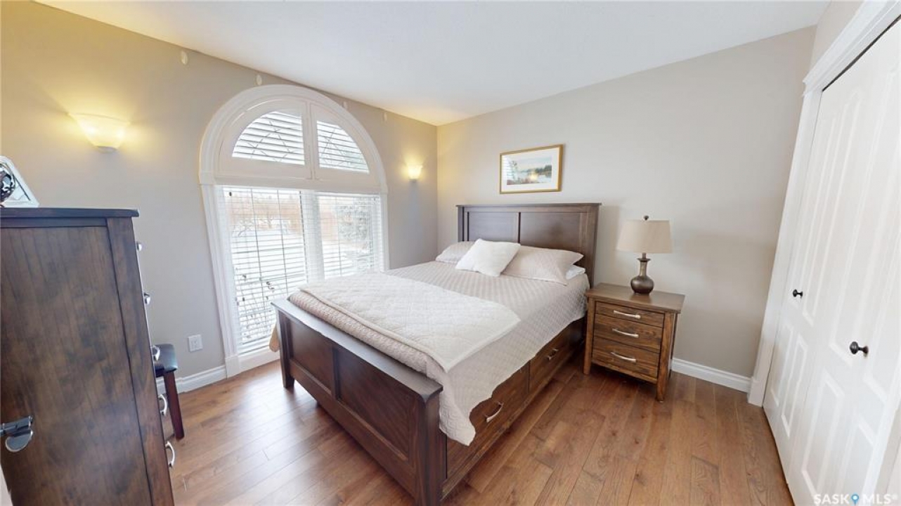 Absolutely beautiful and large executive-quality walkout bungalow on a well-treed 10-acre yard only 10km east of Saskatoon. Please view the Matterport 3D virtual tour and floor plans in the listing. Definitely one of the best acreages you'll find, offering city water, a private park-like yard, and a stunning home with over 3600 square feet of living area. An archway connects the foyer to a spacious living room under soaring vaulted ceilings, where you can cozy up to a warm gas fireplace. A formal dining area with large windows and a gourmet kitchen with ample counter space flank the living room, perfect for entertaining while maintaining distinct spaces. The primary bedroom has a luxurious ensuite with a jetted tub and a walk-in closet. The main floor also includes a second bedroom, a full bath, an office that could be converted into another bedroom, laundry, and a 4-season sun room accessible from the primary bedroom and kitchen nook. The walkout basement with comfortable in-floor heat adds a 3rd bedroom and bathroom, a generously large family room with another gas fireplace, and a games room that could be modified to serve as an additional bedroom. An attached garage is fully insulated and finished with cabinets, and there's a heated 24x24 workshop. A massive paving stone patio is sheltered by the deck above, with a curved sidewalk nestled up to a fish pond. Over $100k spent on major renovations and improvements since 2021 by qualified trades using top-quality materials - pride of ownership is evident everywhere you look. Many gardens, fruit trees, and walking paths provide a peaceful setting, while high-end finishes like hardwood flooring and granite countertops inside the home will pamper owners with even the most discerning and cultivated tastes. Too many upgrades and features to mention, the list goes on and on - must be seen to be fully appreciated. Call now for your own private viewing!