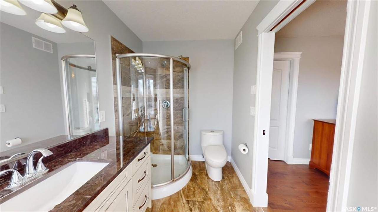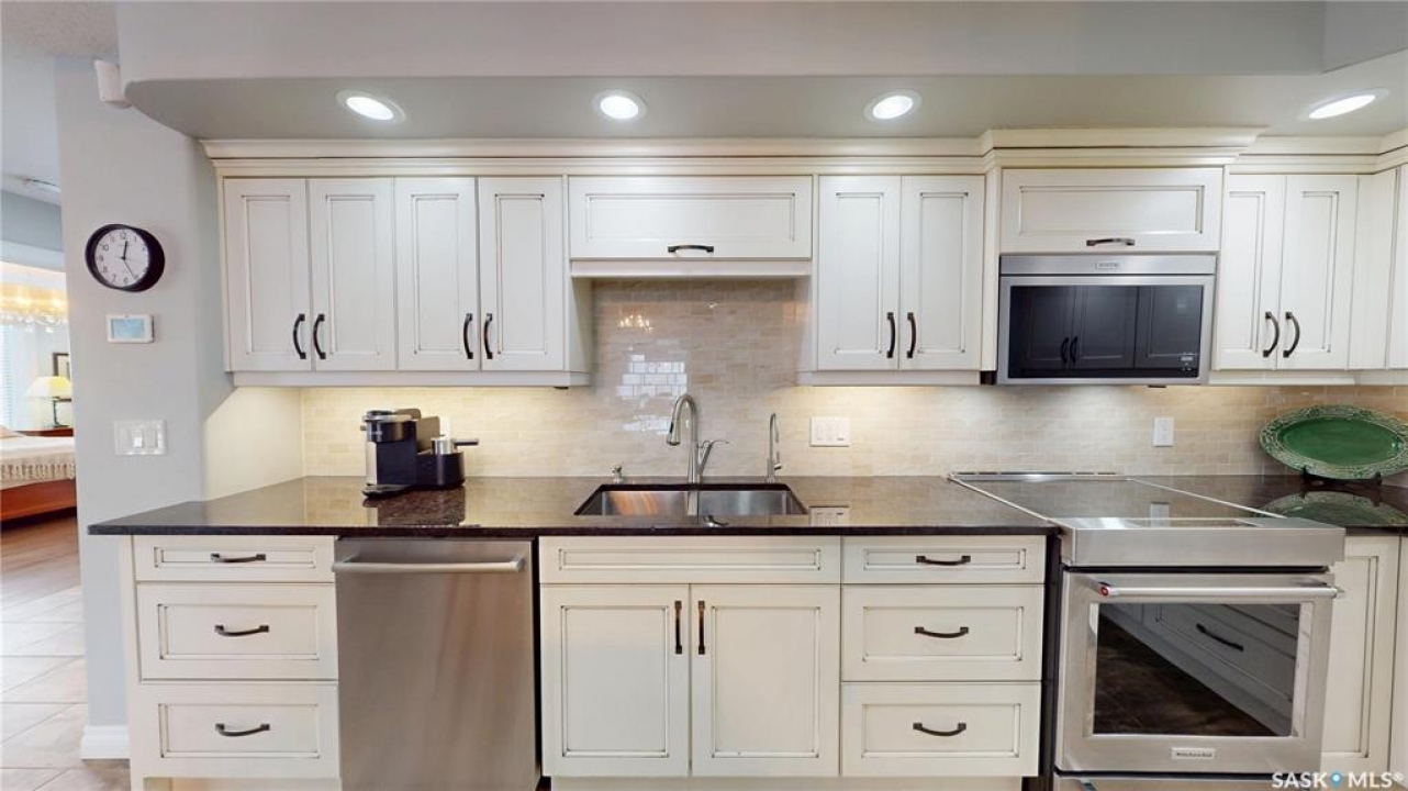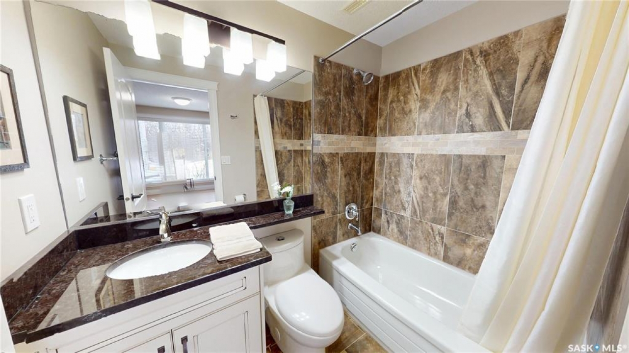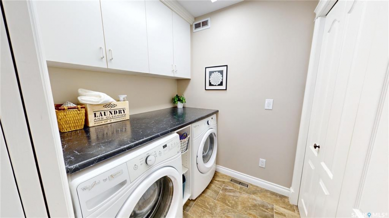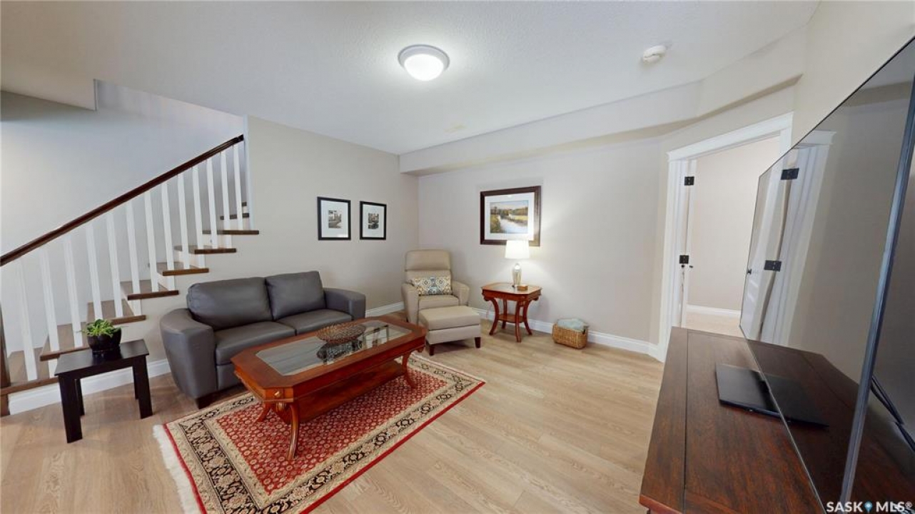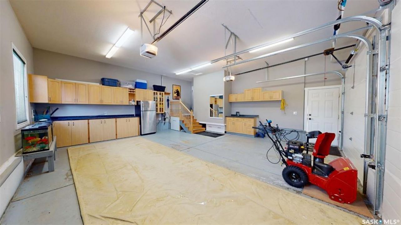 Absolutely beautiful and large executive-quality walkout bungalow on a well-treed 10-acre yard only 10km east of Saskatoon. Please view the Matterport 3D virtual tour and floor plans in the listing. Definitely one of the best acreages you'll find, offering city water, a private park-like yard, and a stunning home with over 3600 square feet of living area. An archway connects the foyer to a spacious living room under soaring vaulted ceilings, where you can cozy up to a warm gas fireplace. A formal dining area with large windows and a gourmet kitchen with ample counter space flank the living room, perfect for entertaining while maintaining distinct spaces. The primary bedroom has a luxurious ensuite with a jetted tub and a walk-in closet. The main floor also includes a second bedroom, a full bath, an office that could be converted into another bedroom, laundry, and a 4-season sun room accessible from the primary bedroom and kitchen nook. The walkout basement with comfortable in-floor heat adds a 3rd bedroom and bathroom, a generously large family room with another gas fireplace, and a games room that could be modified to serve as an additional bedroom. An attached garage is fully insulated and finished with cabinets, and there's a heated 24x24 workshop. A massive paving stone patio is sheltered by the deck above, with a curved sidewalk nestled up to a fish pond. Over $100k spent on major renovations and improvements since 2021 by qualified trades using top-quality materials - pride of ownership is evident everywhere you look. Many gardens, fruit trees, and walking paths provide a peaceful setting, while high-end finishes like hardwood flooring and granite countertops inside the home will pamper owners with even the most discerning and cultivated tastes. Too many upgrades and features to mention, the list goes on and on - must be seen to be fully appreciated. Call now for your own private viewing!