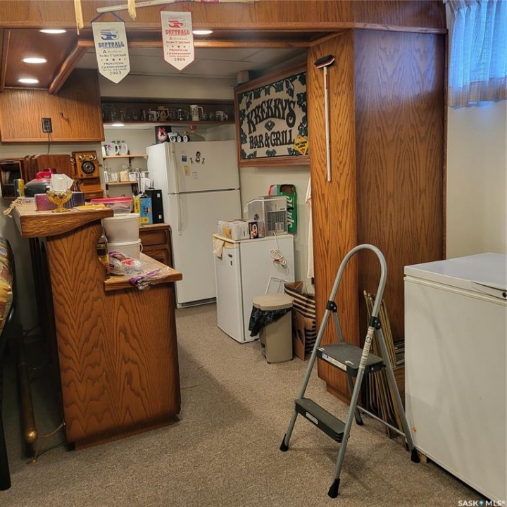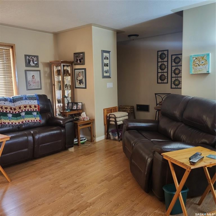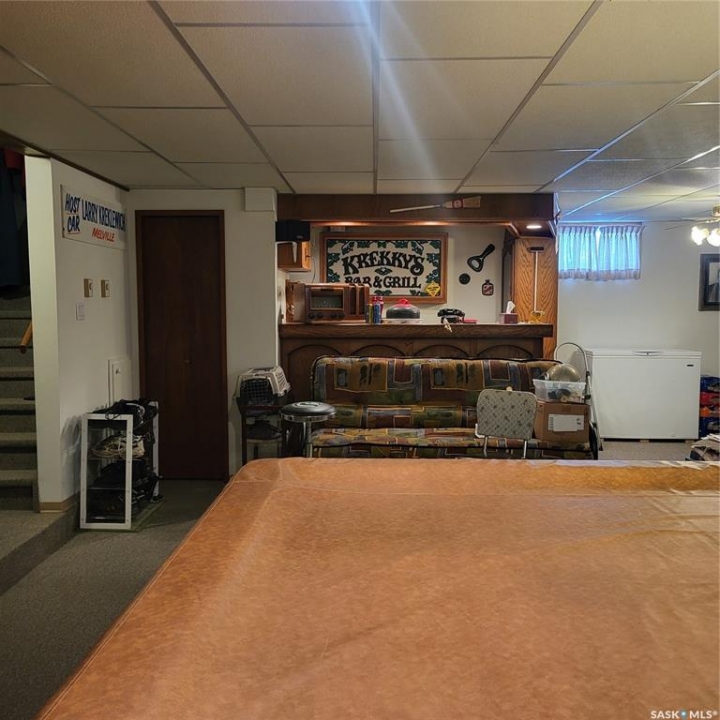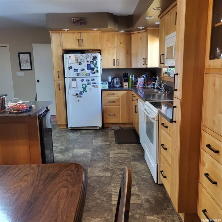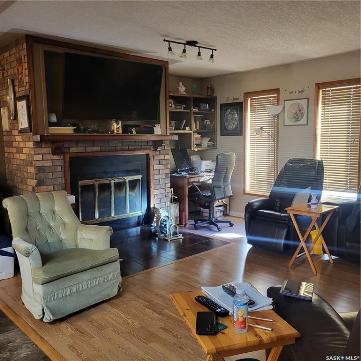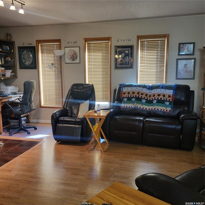 RM of Cana #214. Located only 7 miles east of Melville along Hwy #15 sits this beautiful and immaculate 11 acre acreage. The sellers are the original owners and built the house and developed the yard site. The house hade double 2" x 4" walls, newer triple pane PVC windows, stucco exterior, custom built kitchen cabinets, wood fireplace and composite decking on both decks. there are 3 bedrooms on the main floor plus another bedroom in the basement. the master bedroom also has a 2 pc ensuite. The laundry room is conveniently setup at the back entrance. The basement is fully developed with a huge family room, wet bar and another bathroom. The property is hooked up to the Yorkville water pipeline for an excellent water source. there is also a large dugout with its own pressure system in the house and can be used to water the garden and lawn area. The 28' x 32' garage has matching stucco finish with the house and has power and cement floor. There are numerous garden sheds, some with power, for extra storage. The fire pit area has brick walk way, with a TV stand and is well sheltered with trees and shrubs.