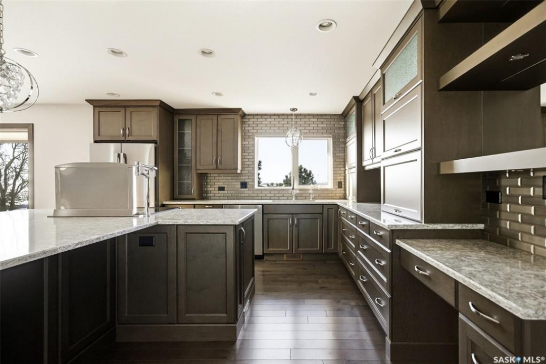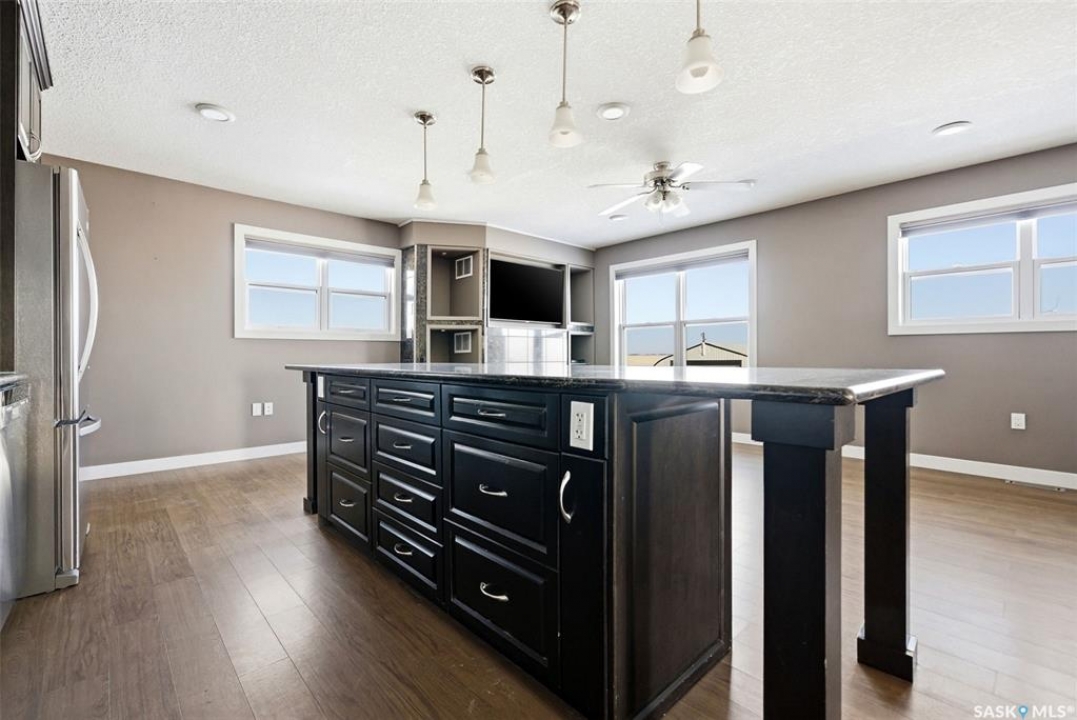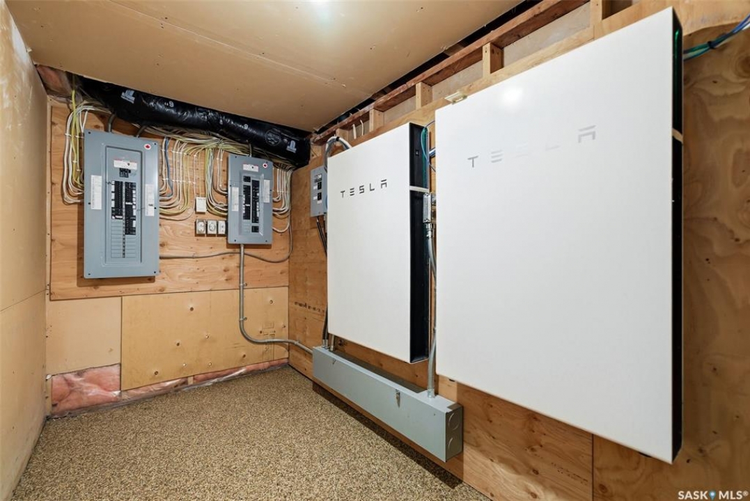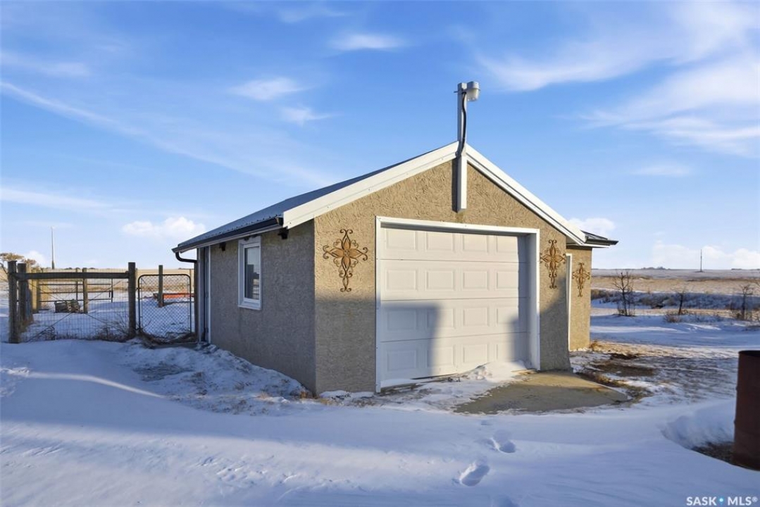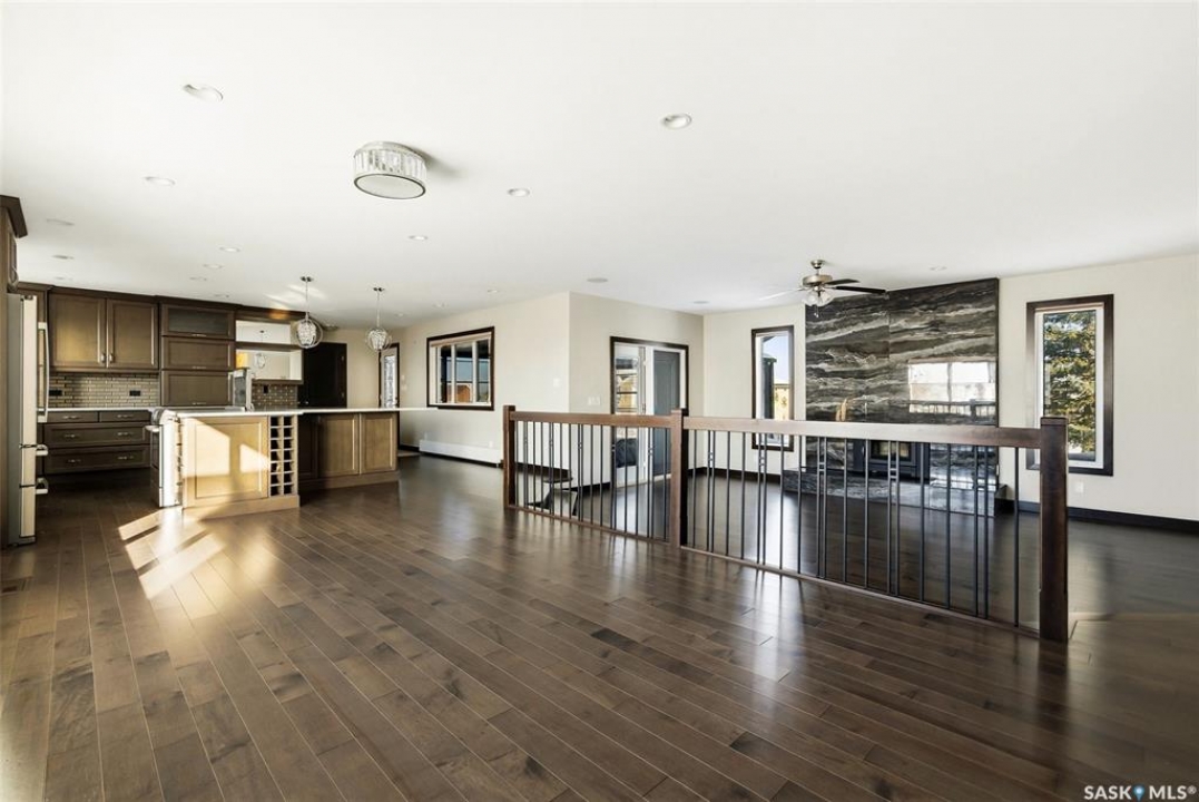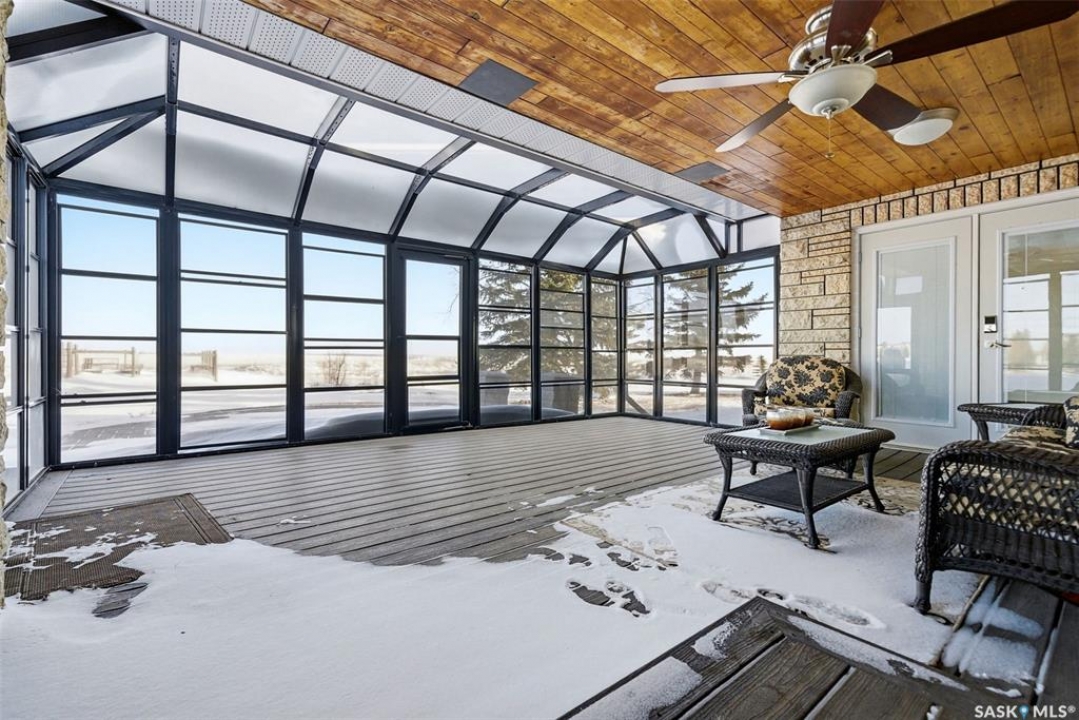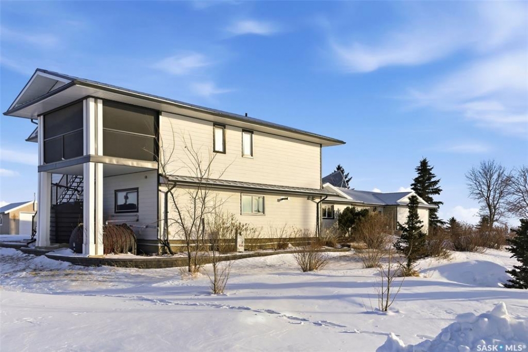 Welcome to this truly unique acreage, ideally located just minutes southeast of Regina in a highly desirable setting. Situated on 4.36 acres, this impressive six-bedroom, six-bathroom home is filled with thoughtful upgrades and exceptional living spaces. The main floor offers three bedrooms and three bathrooms, highlighted by an open-concept living area with hardwood floors, an updated kitchen, abundant natural light, a cozy wood-burning fireplace, and a screened-in porch perfect for relaxing. Upstairs, you'll find a spacious bonus room along with a beautifully finished two-bedroom, two-bathroom suite featuring a stunning kitchen with a large island, stainless steel appliances, a gas fireplace, its own screened-in balcony, and picturesque views of the surrounding property. The lower level includes an additional bedroom, bathroom, kitchenette, comfortable living area, and ample storage. Outside, the expansive yard showcases the full beauty of acreage living with a large quonset, chicken coop, dugout, and wide-open space to enjoy. The home is equipped with extensive solar panels and two Tesla Powerwalls to help reduce utility costs, along with a backup generator, city water, select in-floor heating, all appliances included, a heated triple garage, durable Hardie board siding, a metal roof, and many more desirable features. This is a rare opportunity to own a one-of-a-kind property in an outstanding location—schedule your private viewing today.