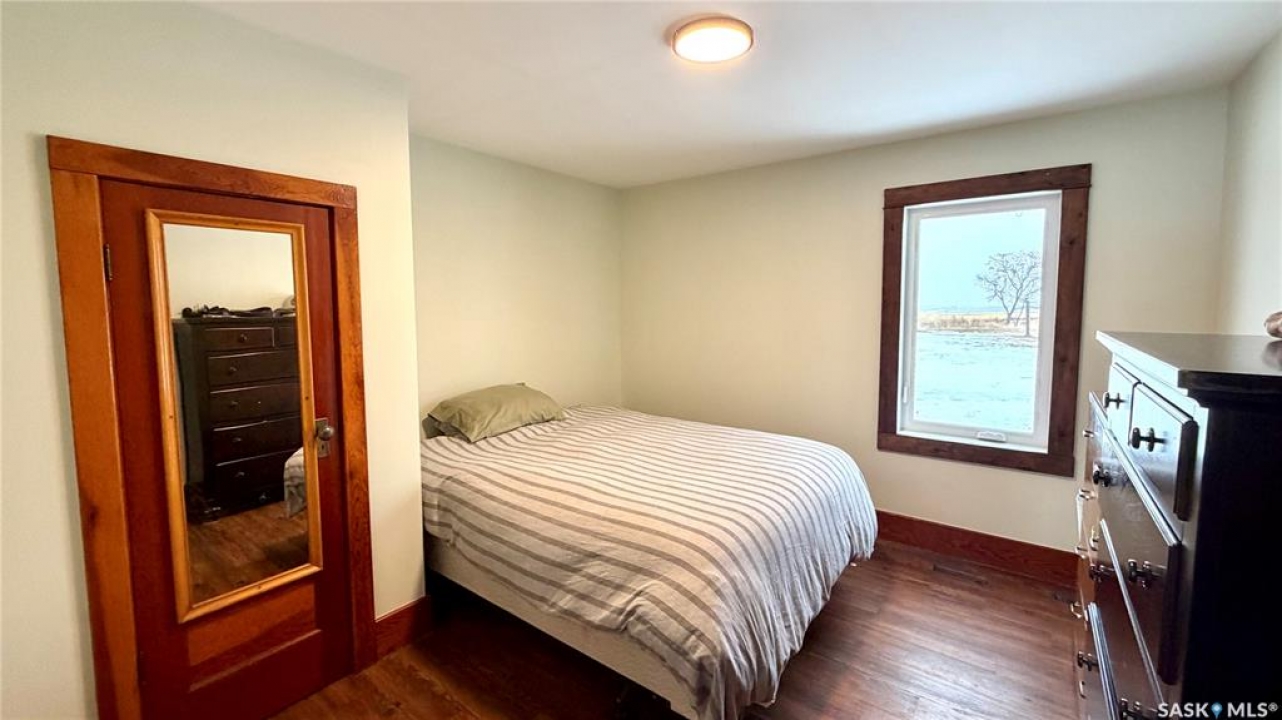 80 ACRES with Updated CHARACTER HOME, Outbuildings & PRODUCTIVE FARMLAND This versatile 80-ACRE FARM PROPERTY with G soil rating offers strong potential for HOBBY FARMING, livestock farming, or rural living with income opportunity. The cultivated land was seeded to wheat in 2025 and could be rented to offset annual costs. The UPDATED 1,340 sq. ft. CHARACTER HOME retains its original charm and features two mudrooms (one with MAIN FLOOR LAUNDRY and nearby 3-piece bath), an upgraded country kitchen with STAINLESS STEEL APPLIANCES, island, open shelving and coffee bar, formal dining area, LARGE LIVING ROOM with play area, and an additional bedroom/office/den. Upstairs offers two more bedrooms and a renovated bathroom, with original hardwood floors, staircases, banisters, and storage. Updates over past several years include GEOTHERMAL HEATING AND COOLING with back-up electric heat if needed, ON DEMAND HOT WATER HEATER, windows, insulation and siding, PEX water lines, drilled well (2008), underground power, and metal roof on house and garage. Outbuildings include a LARGE BARN and heated, insulated double detached garage with concrete pad. Treed yard-site provides shelter, privacy, and ample garden space. CONVENIENTLY LOCATED: 19 km to Outlook or Dinsmore (school access), 9 km to Macrorie, 16 km to Lake Diefenbaker, and approx. 1.5 hrs to Saskatoon. A rare, WELL-ROUNDED RURAL PROPERTY offering lifestyle, land, and income potential. Directions: West of Outlook on HWY 15 to Surbiton Rd; Turn left (south) at directional realtor sign and head approx 15 km south on Surbiton Rd; Turn left at realtor sign, then left at end of shared road.