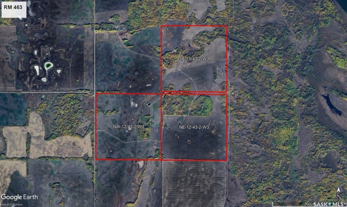 Located 4 miles south of Duck Lake, SK and 2 miles west, this 480-title acre offering consists of 3 parcels with a mix of cultivated land, pasture, and bush. According to SAMA, the property includes 305 cultivated acres, 61 native pasture acres, and 115 wetland/bush acres, with a weighted average soil final rating of 33.1. The assessed value for 2025 is $423,400. The land features some bush, sloughs, and stones. Fencing consists of a mix of 4-wire and 3-wire fencing, with no fence along the north side of SE 13-43-2 W3. The owner has completed clearing work on NW 12-43-2 W3, which was sprayed and seeded with a disc seeder in 2025. If unsold, the owner plans to seed canola in 2026 and apply glyphosate as part of the crop plan. Farmland price is $985,000, equating to approximately $2,053 per title acre and $3,230 per cultivated acre (SAMA), or 2.33 times the 2025 assessed value.
