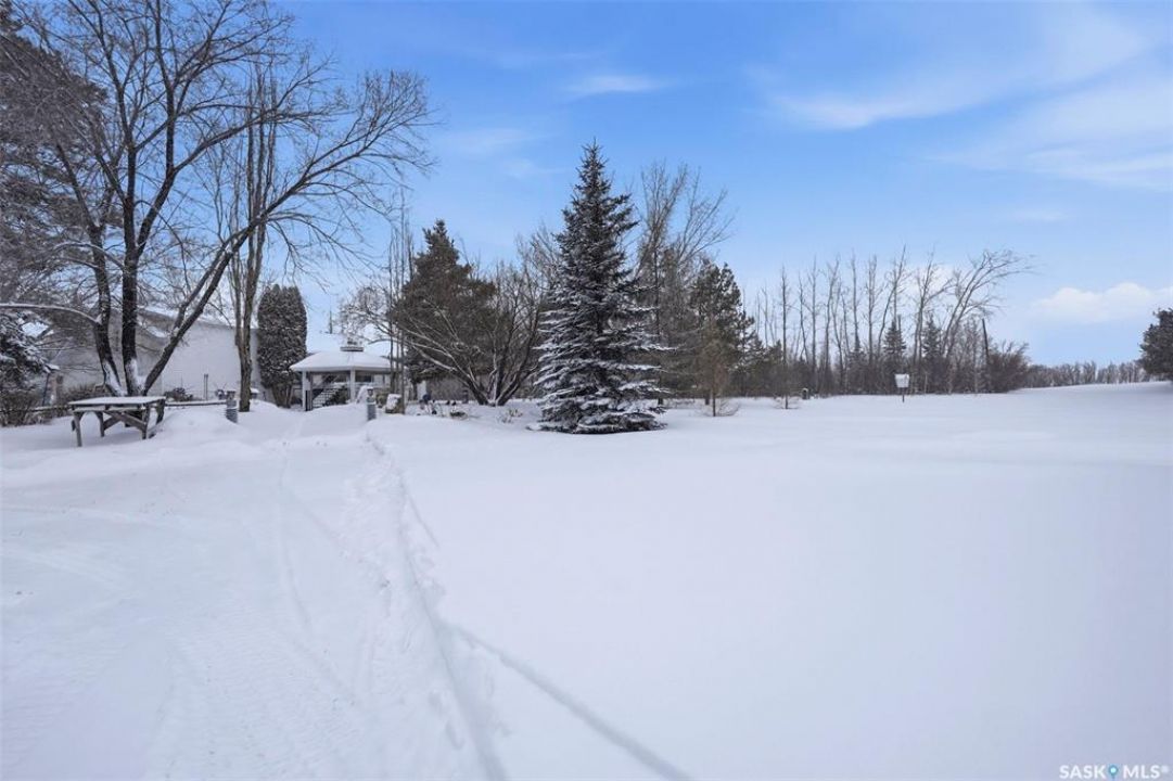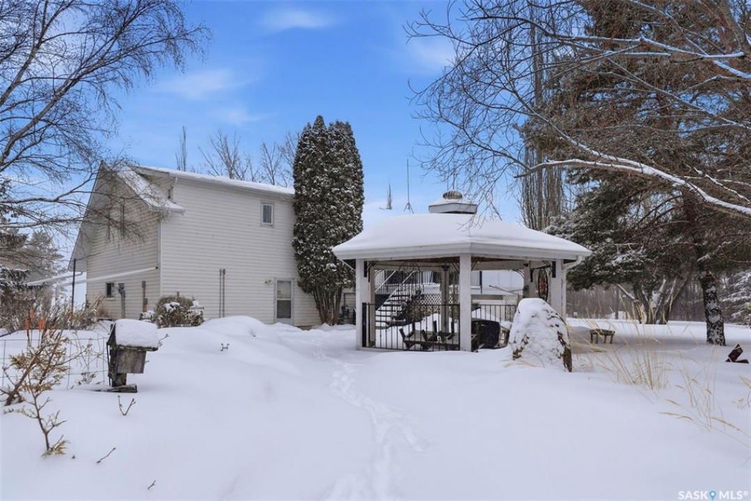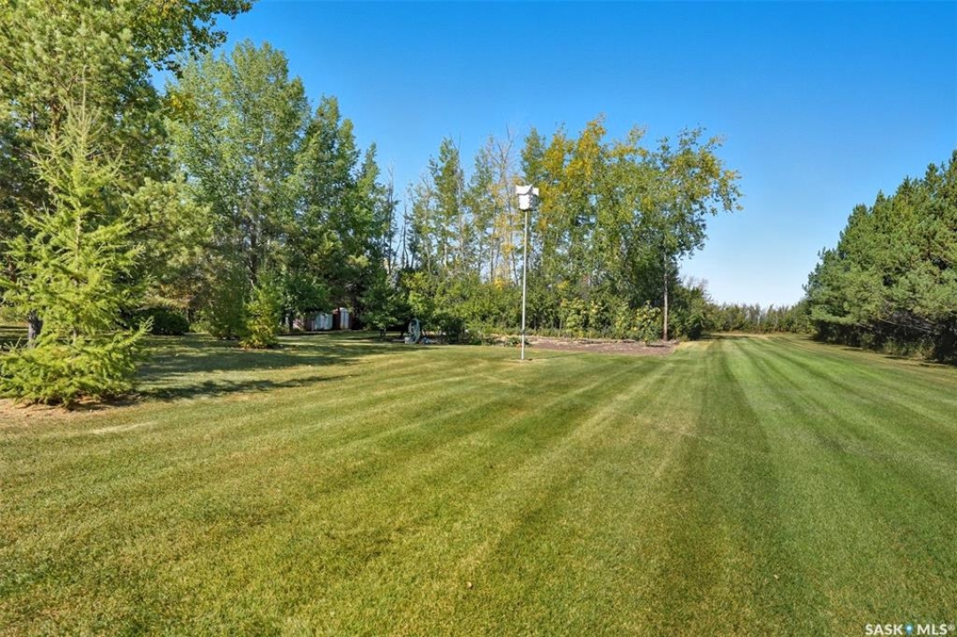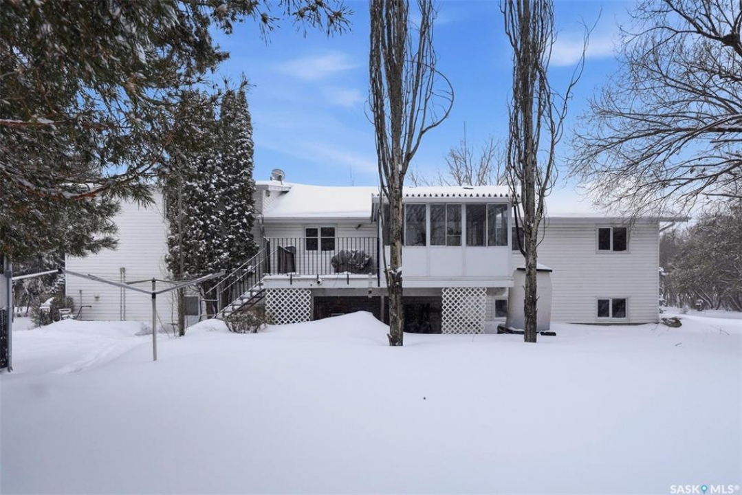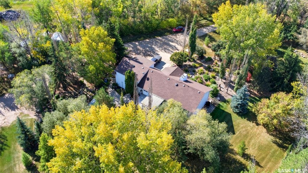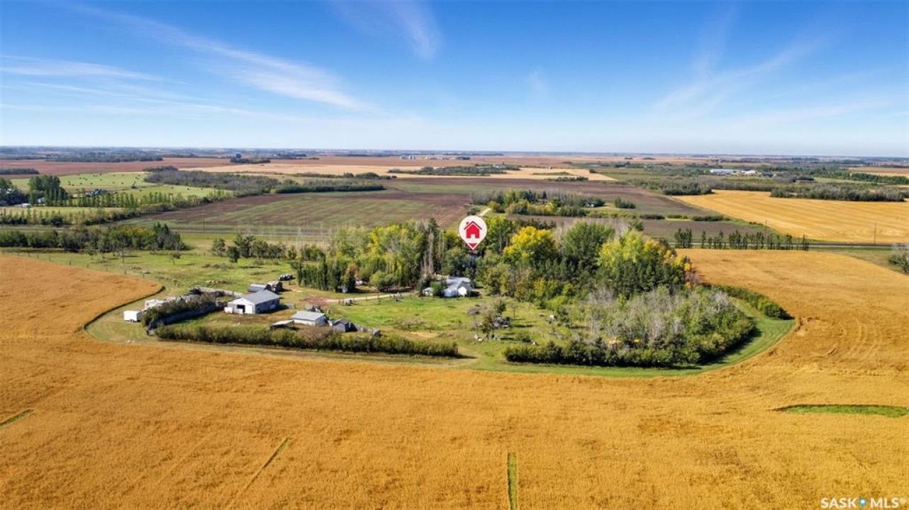 What an incredible 80-acre acreage! This stunning bi-level home is filled with natural light and offers 4 spacious bedrooms, including an impressive 472 sq. ft. primary suite. The living room features vaulted ceilings and a striking floor-to-ceiling stone fireplace, creating a warm and inviting focal point. The basement is supported by a steel beam, allowing for a beautiful future build-out with oversized windows. The home is serviced with city water and natural gas, offering the comfort of urban utilities in a peaceful country setting. The oversized 26' x 22' garage provides excellent flexibility, with easy potential to expand to a 4- or even 6-car garage—either by extending to the rear for two additional vehicles or to the side for a third bay. The shop (including all tools) with in-floor heating adds even more value and functionality. The barn features �-inch plywood exterior sheeting, ready for siding or another exterior finish of your choice. Multiple outbuildings add versatility for storage, livestock, or hobby use. Ideally located on pavement, door to door, just west of Saskatoon, approximately 6 minutes from the city, this property also includes prime grain land currently leased to a local farmer, providing added income potential. A rare opportunity combining space, location, and endless possibilities—this acreage truly has it all.