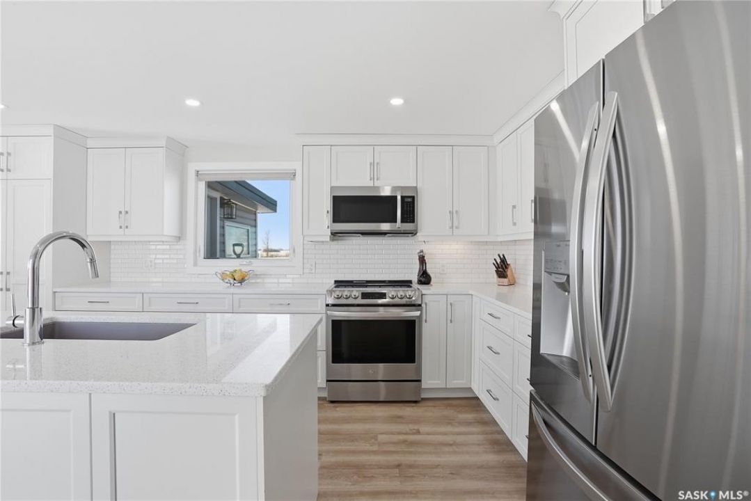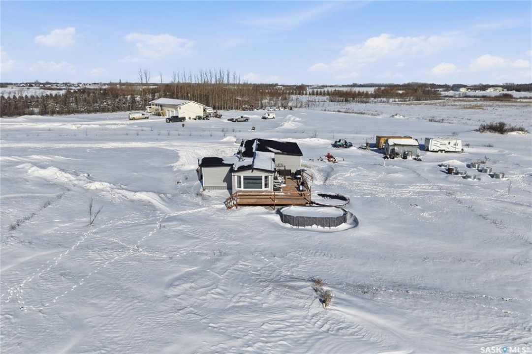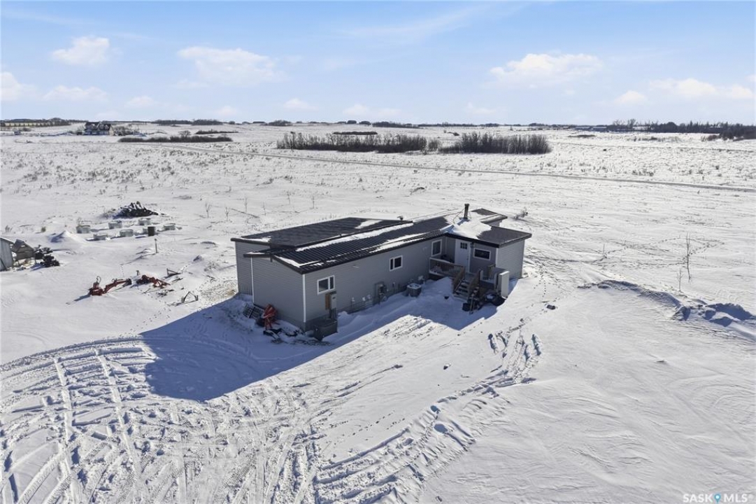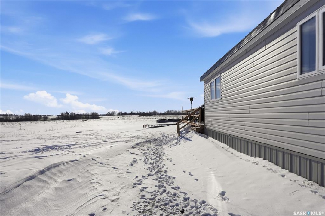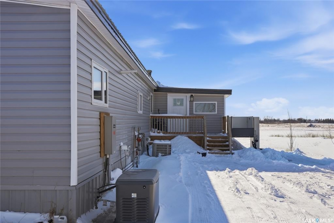Welcome to 9 Waz Road. This gem of an acreage is one you will not want to miss. Totally renovated mobile home located on 12 acres of owned land. Just 10mins outside of Saskatoon. Affordable out of town living with tons of future possibilities and options. Walk in and instantly love the modern country vibe. You are first greeted with a large mudroom with ample space for organization and storage. Continue through and you will love the open concept main area. Bright, clean and very functional kitchen with oversized island, stainless appliances, custom backsplash and quartz countertops. Cozy up with wood burning fireplace finishing off the front living room nicely. You will appreciate the extra width in this home as there were two additions added. Spacious primary bedroom with full ensuite. Three additional bedrooms and another full bath. Large laundry area and luxury vinyl plank throughout. Over 1400 sq. ft on one level. Many big ticket renovations done in 2022 include windows, doors, vinyl siding, shingles, soffit, fascia, furnace, on-demand hot water, electrical, plumbing, flooring, kitchen – virtually everything. Heated crawl space with metal skirting (dug in deeper) and spray foam insulation. Brand new septic also done in 2022 ($32K value). new central air conditioning and generator (2024). Amazing opportunity to get into acreage living now and enjoy your very own space. Conveniently located just outside Clavet with an easy short drive on gravel. CSA approved and reasonable home insurance ($4,000/ year).