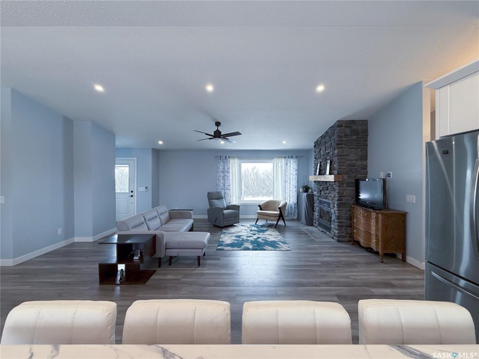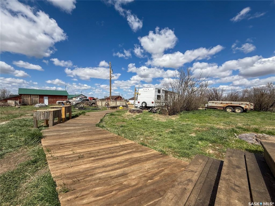 Welcome to your perfect country escape! Nestled on 9.73 acres just 12km north of Hazlet, SK, this stunning 1,506 sq. ft. home built in 2022 offers the best of modern living with a peaceful rural setting. If you've been searching for space, privacy, and the perfect setup for livestock, this acreage checks all the boxes! Step inside to a bright and airy open-concept living space, where natural light pours in, and every detail has been thoughtfully designed. The kitchen is a dream, featuring a large hidden pantry that keeps everything organized and out of sight. The living room is warm and inviting, complete with a beautiful stone wood-burning fireplace, perfect for cozy nights in. The spacious master bedroom is a true retreat, offering a walk-in closet and a private 4-piece ensuite. Two more bedrooms, another 4-piece bath, and a main floor laundry add to the convenience of this well-laid-out home. Downstairs, the unfinished basement is a blank slate, with a roughed-in bathroom already in place, ready for your vision! This home is built for efficiency, featuring a 200-amp electrical panel, a high-efficient hot water heater and a high-efficiency furnace - both run with propane. Outside, the partially fenced acreage is ideal for livestock, with corrals and plenty of outbuildings, including a single detached garage, pump house, cat house, smaller barn, and multiple sheds. Whether you're dreaming of a hobby farm, horse property, or just extra space to roam, this acreage offers endless possibilities. And let's talk about Hazlet—a vibrant, welcoming small town just a short drive from Swift Current! This tight-knit community offers a K-12 school, Co-op Cardlock, skating/curling rink, Hazlet Café, post office, and a strong agricultural backbone. If you're looking for a peaceful country lifestyle with great amenities nearby, this is the place to be!
