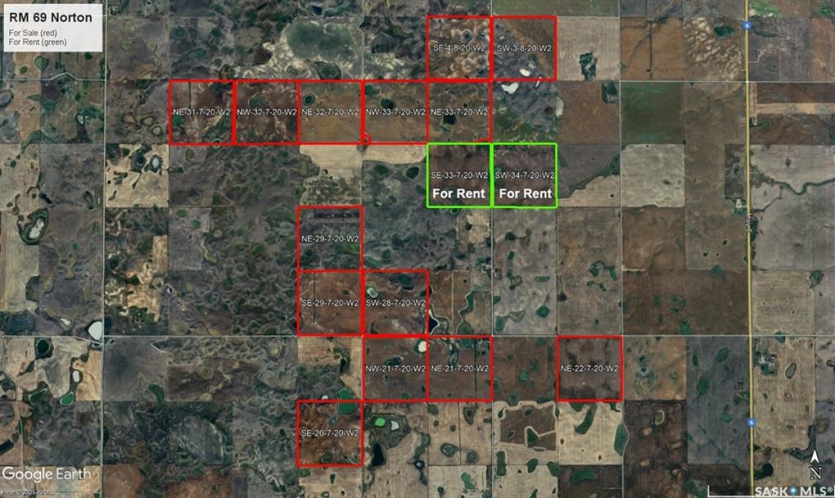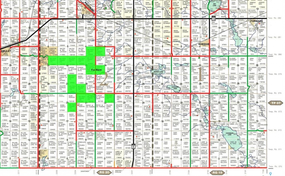 This very attractive package of 14 grain farmland quarters is located just south of Pangman, SK. Farmland & Price Summary 14 parcels 2,198 title acres (ISC) 2,034 Vendor stated seeded acres SAMA Information 2,203 total acres 1,739 cultivated acres 292 native pasture acres 189 wetland/bush acres $3,191,800 total 2025 assessed value (AV) $231,815 average assessment per 160 acres 44.2 soil final rating (weighted average) $5,600,000 Farmland Price $2,548 per title acre (ISC) $3,220 per cultivated acre (SAMA) $2,753 per cultivated acre (Owner) 1.75 times the 2025 assessed value (P/AV multiple) Vendor's yard (approx.10 acres) in NE 21-7-20 W2 will be subdivided off including all buildings. Vendor is also going to subdivide and keep 10 acres along the east side of the NE 29-7-20 W2, the cost for subdivision will be paid by the Vendor. The sale closing for NE 21 and NE 29 will be once the subdivision is completed. Vendor is also keeping NW 33-07-20 W2 Ext 2, Surface Parcel 166037159 (1.73 acres). Steel bins on SW 28, NE 21, & NE 33 (10,000 bushels hopper and 20,000 bushels of flat bottom) are not included in the sale and to be removed. Lease Opportunity: The following land are to be rented by the Purchaser for 2026 crop year at $85 per Vendor's cultivated acres. Vendor states that there are 455 cultivated acres. RM 69 SE 33-7-20 W2, SW 34-7-20 W2 & SE 2-8-20 W2.