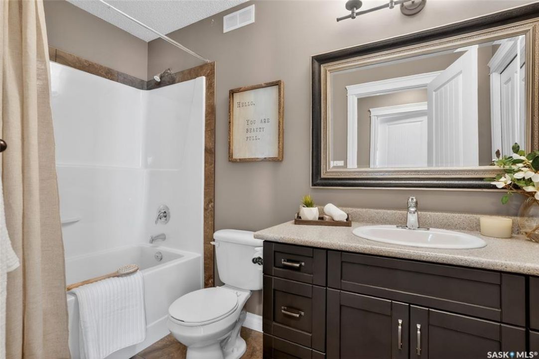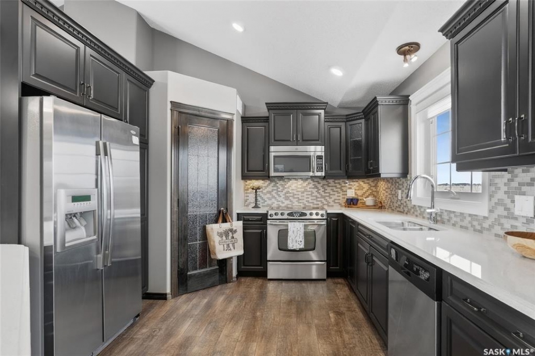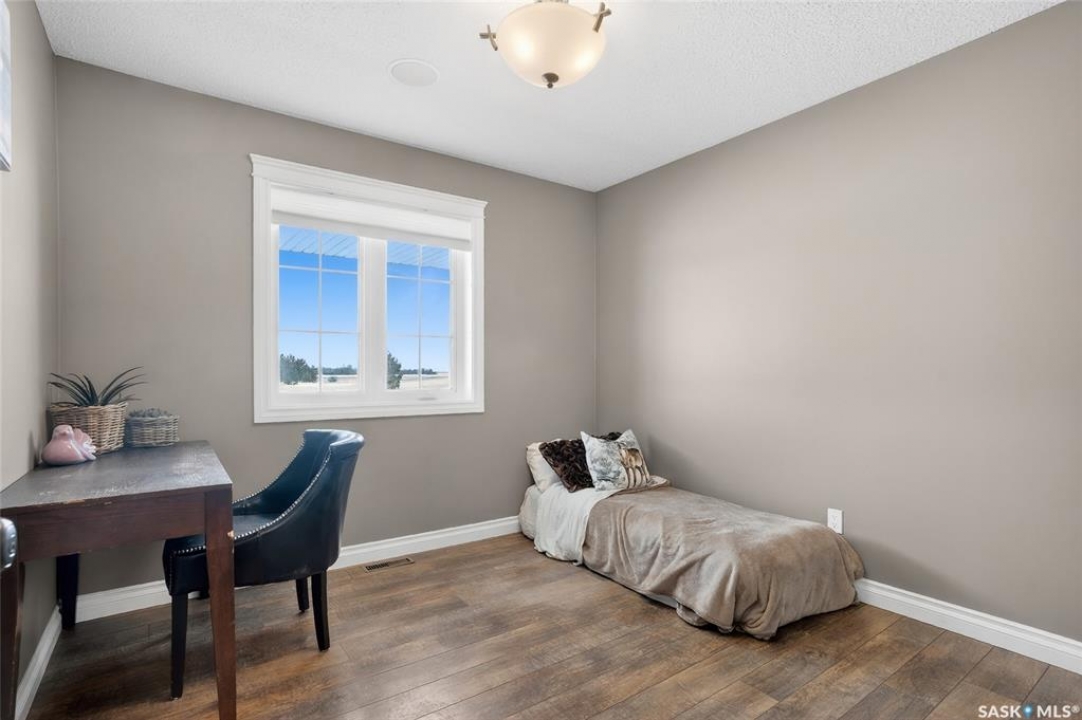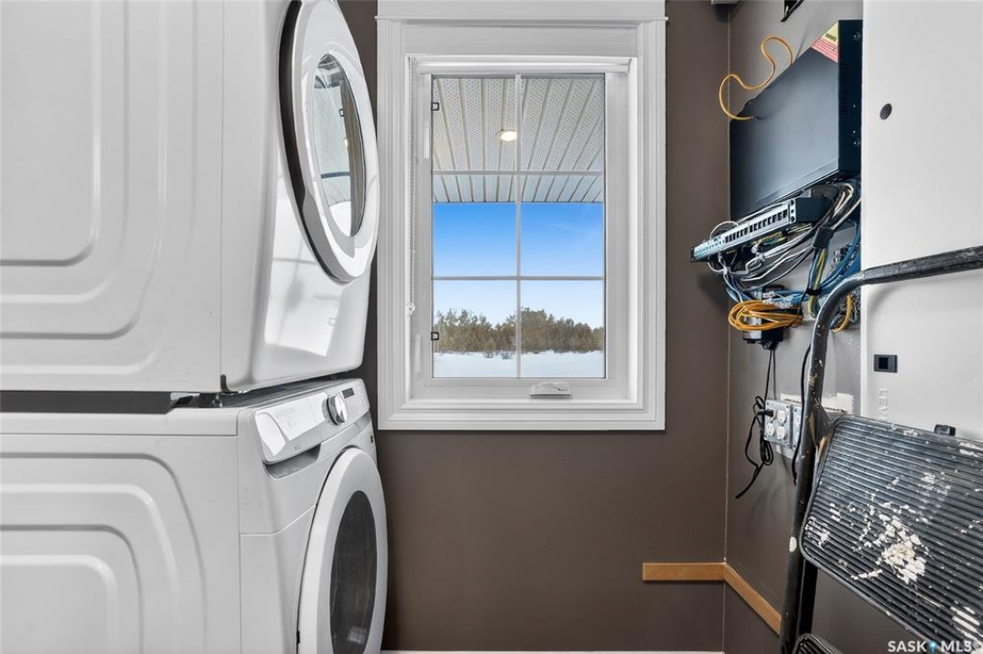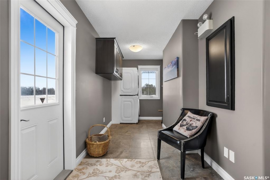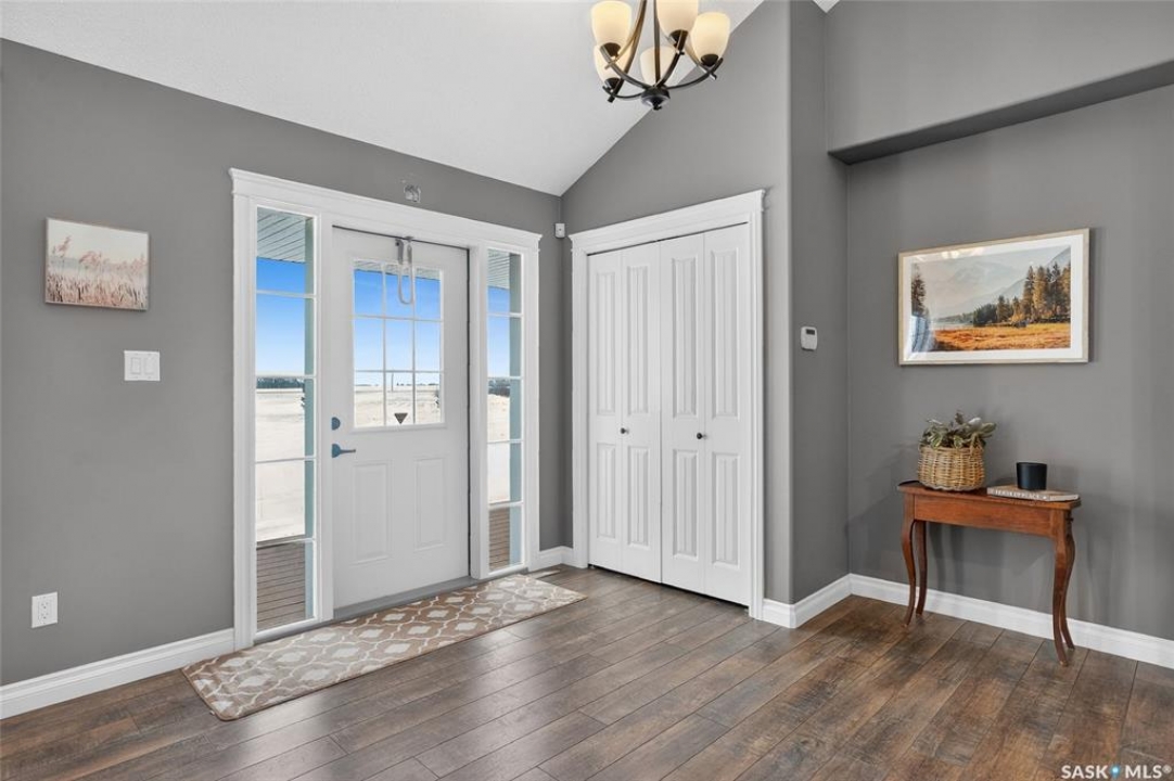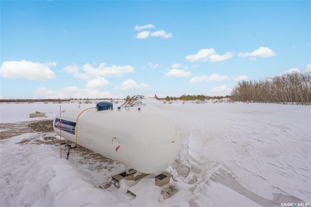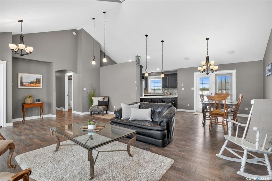 Welcome to this beautiful 2014 Cape Cod style bungalow situated on 10 scenic acres just minutes from Saskatoon, Dalmeny, and Martensville, offering the perfect balance of peaceful acreage living and convenient access to the city with nearly all pavement via Highway 16. This former Pinnacle Homes show home features 1,618 sq ft of thoughtfully designed living space with soaring vaulted ceilings, large dormer windows, and a stunning floor to ceiling stone fireplace that anchors the bright, open living area. The spacious kitchen is ideal for entertaining with a peninsula island, quartz countertops, tile backsplash, stainless steel appliances, and a corner pantry with excellent storage, while durable laminate and tile flooring run throughout the home with no carpet anywhere. The layout includes three bedrooms and a large mudroom that could easily be reconfigured by relocating laundry to the adjacent 3-piece bathroom. A 4-foot crawl space basement provides abundant usable storage, and outside you'll find a wraparound deck overlooking the property, with railing included should the new owner wish to install it, though the deck sits less than two feet from the ground. The 10-acre parcel offers a great mix of mature trees and open pasture with subdivision currently in process, a well with outdoor hydrant and tap, and the home currently supplied by a large cistern with the option to switch to the well if desired. The home is heated by propane with very low annual heating costs, and buyers also have the option to incorporate a dream garage into their mortgage through a purchase-plus-improvements program, making this a rare opportunity to own a flexible, beautifully designed acreage property with endless possibilities just minutes from the city! Welcome to your dream prairie acreage!